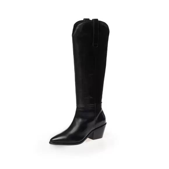 Art. No. CS7667-0001Smarte lange sorte støvler til damer fra Copenhagen Shoes. Denne model er designet med et minimalistisk, men elegant look. Støvlerne har en spids tå og en robust hæl, der giver et moderne udtryk. Den høje skaftlængde og de fine detalje