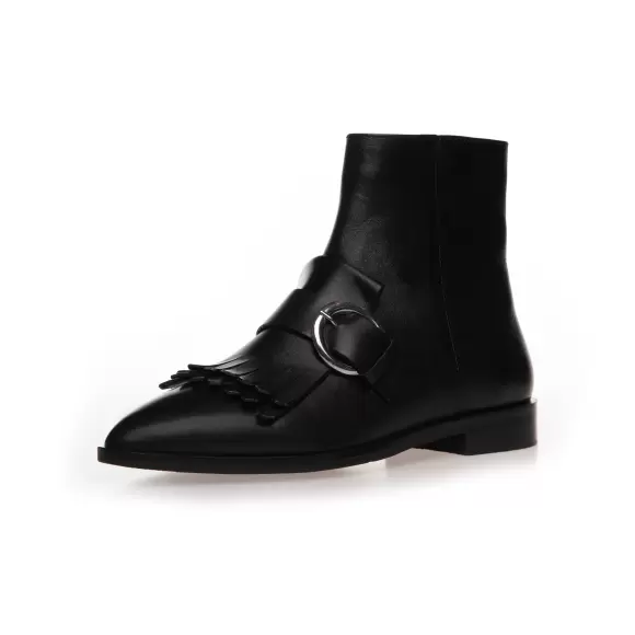 Art. No. CS8635-0001Copenhagen Shoes IF WHEN CS8635-0001 er elegante sorte damestøvler i et moderne design. Støvlen er fremstillet i glat læder og pyntet med spændedetalje og frynser foran, som giver et stilfuldt og unikt udtryk. Den flade hæl og slanke s