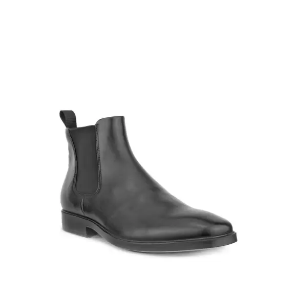 Art. No. 523384-01001ECCO METRO MILAN Chelsea-støvlen er det ideelle valg til den moderne mand, der ønsker et elegant og alsidigt fodtøj. Den sorte læderoverflade giver et skarpt og raffineret udtryk, mens den klassiske Chelsea-silhuet med elastiske sider