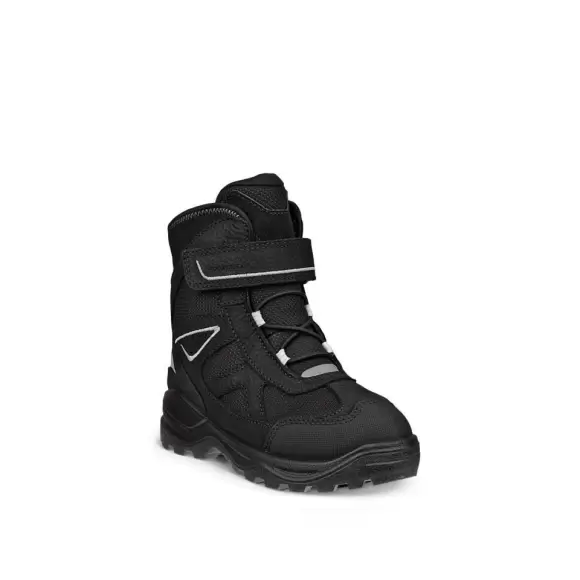 Art. No. 710312-51094ECCO SNOW MOUNTAIN K 1S er robuste og varme vinterstøvler, der er skabt til aktive børn. Den sorte støvle har en kombination af snørebånd og en praktisk velcrolukning, som sikrer optimal pasform og nem af- og påtagning. Den høje skaft