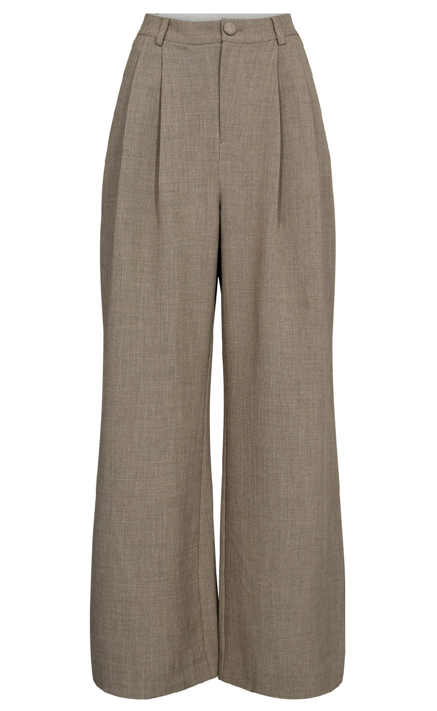 Bukser fra Nmph Stilfulde bukser fra Nmph i en klassisk beige nuance med et moderne, afslappet snit. Bukserne har høj talje, brede ben og pressefolder, der giver et elegant og sofistikeret look. De er designet med bæltestropper og skjult lukning, hvilke