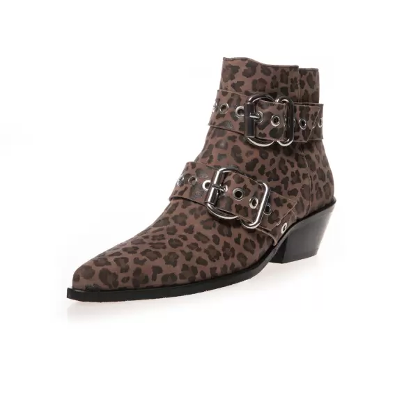 Art. No. CS8355-0134Copenhagen Shoes MOVE FOR MORE CS8355-0134 er en smart og trendy støvle til damer med leopardmønster. Støvlerne har flotte detaljer med sølvfarvede spænder og metaløjer, der tilføjer et råt look til det moderne design. Den skarpe tå og