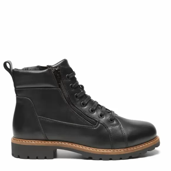 Art. No. 222-19-110Flot og meget behagelig støvle til damer fra New Feet, som er lavet med en pæn overdel i en glat kalveskind. Støvlen er udstyret med en snørebånd, der gør det nemt justeres og tilpasses til fodden, og på indvendige side er der en prakti